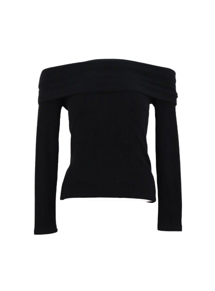 Elevate your wardrobe with the Slimline Elegance Sweater, a refined piece featuring an off-shoulder neckline...