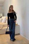 Elevate your wardrobe with the Slimline Elegance Sweater, a refined piece featuring an off-shoulder neckline designed to enhance and flatter your silhouette.